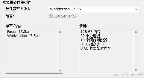 在这里我用VM17.5.1版本,建议使用VM17.5.x以上版本,ESXI镜像使用8.0版本即可